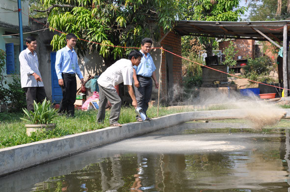 | Phó Chủ tịch Thường trực UBND tỉnh Nguyễn Hải Ninh (bên trái) thăm một mô hình phát triển kinh tế tại huyện Krông Năng. Ảnh: M. Thuận |