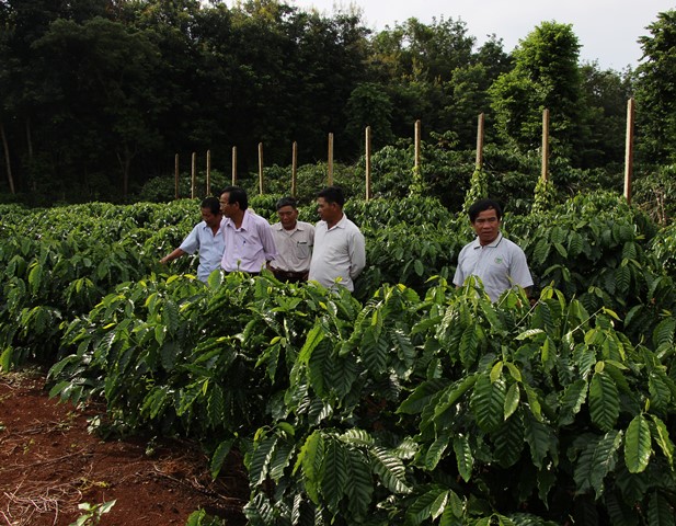 | Cán bộ Agribank Chi nhánh Cư Kuin tìm hiểu khó khăn của người trồng tiêu trên địa bàn. |