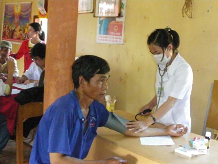 | Bác sĩ đo kiểm tra huyết áp cho người dân |