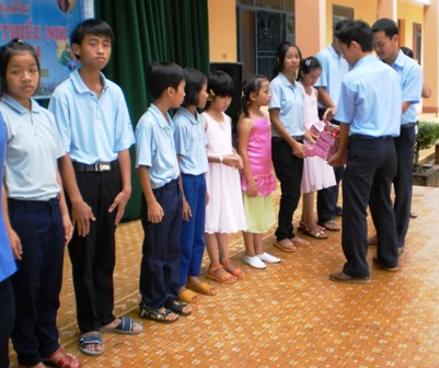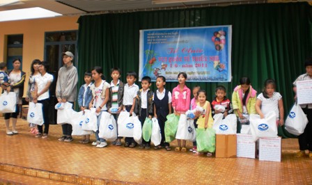 | Trao quà cho các em khuyết tật đạt danh hiệu học sinh khá, giỏi trên địa bàn thành phố. |