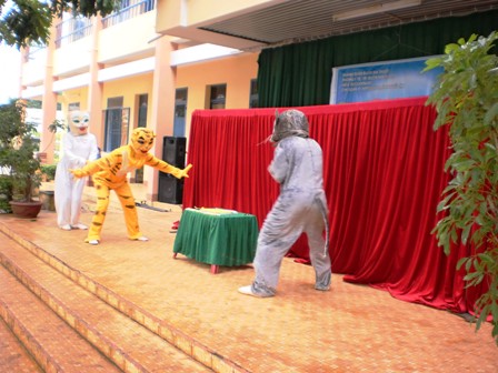 Cũng trong dịp này, Đội tuyên truyền lưu động (Trung tâm Văn hóa thông tin tỉnh) đã đến biểu diễn nghệ thuật múa rối miễn phí phục vụ các em thiếu nhi khuyết tật tại Trung tâm.