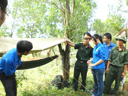 | Chiến sĩ hướng dẫn đoàn viên mắc tăng võng. |