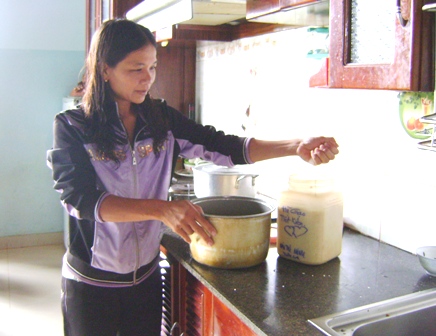 | "Hũ gạo tiết kiệm" của chị Mai Thị Minh (thôn 2A, xã Ea Nam, huyện Ea H’leo) |