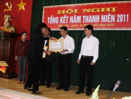 | Cán bộ Trung tâm Nước sinh hoạt và VSMT tỉnh truyền thông nước sạch tại xã Ea Drông (thị xã Buôn Hồ) |