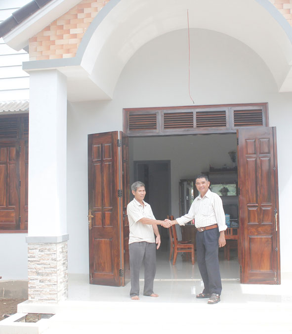 | Bà Nguyễn Thị Thanh (bìa trái) trong căn nhà do Hội Tù yêu nước huyện Cư M’gar hỗ trợ xây tặng. |