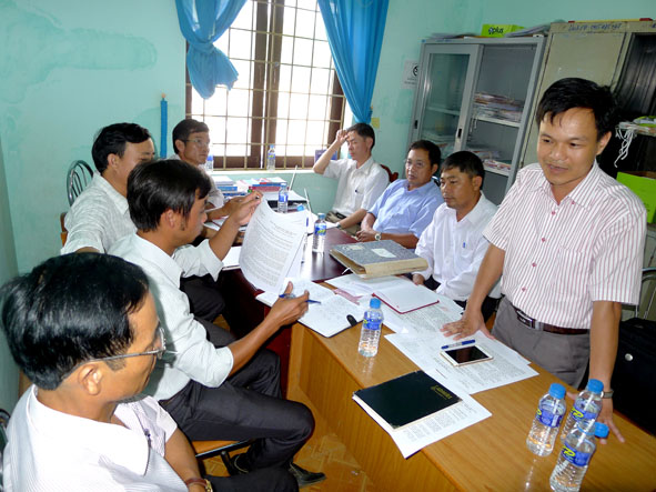 | Trung úy chuyên nghiệp H'Quý Rơ Chăm (bên phải) cùng đồng đội tập luyện văn nghệ, chuẩn bị cho lễ kỷ niệm 70 năm Ngày truyền thống lực lượng vũ trang tỉnh. |
