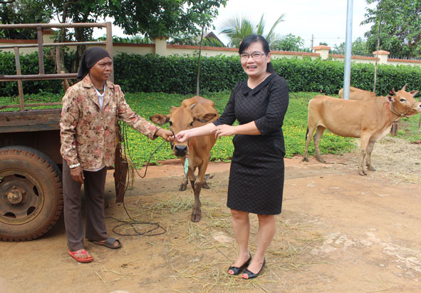 | Một hộ gia đình tại huyện Krông Bông phát triển chăn nuôi bò từ vốn vay hộ cận nghèo |