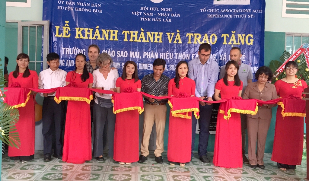 Ngày 25-7, Hội Hữu nghị Việt Nam-Nhật Bản tỉnh phối hợp với UBND huyện Krông Búk, tổ chức phi chính phủ Espérance (Thụy Sĩ) khánh thành Trường Mẫu giáo Sao Mai, phân hiệu buôn Ea Kung, xã Cư Né.
