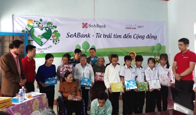 | Đại diện các đơn vị trao Nhà tình thương cho hai chị em |