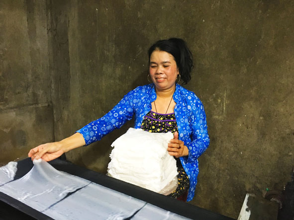 | Người dân thôn 15 (xã Tân Hòa, huyện Buôn Đôn) đang dọn dẹp vệ sinh môi trường trên tuyến đường nội thôn. |