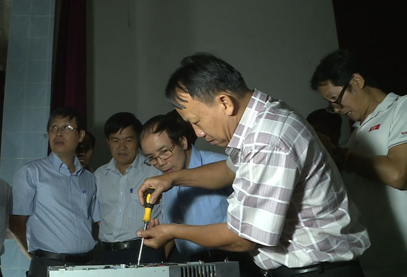 | Bà Nguyễn Thị Linh trao số tiền vận động được để hỗ trợ ông Y Nha Niê chữa bệnh. |
