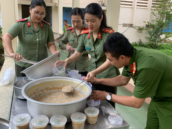 | Chị Trần Hoàng Diễm Phúc (áo nâu) tham gia phần thi sáng tạo các sản phẩm thân thiện với môi trường tại Hội thi Cán bộ, hội viên giỏi do phường Thắng Lợi tổ chức. |
