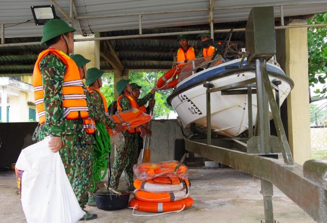 | Đồn Biên phòng Ea H’leo chuẩn bị lực lượng và phương tiện ứng phó với bão số 9. |