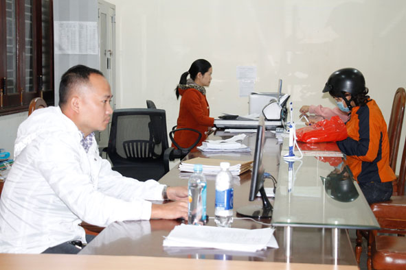 | Cán bộ BHXH huyện Krông Năng giải đáp thông tin về chính sách bảo hiểm cho người dân. |
