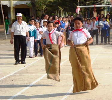 | Các đội đang tranh tài ở môn nhảy bao bố |