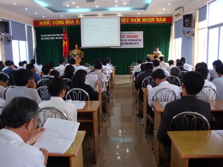 | Lãnh đạo các trường THPT, trung tâm GDTX trên địa bàn tỉnh Dak Lak đang rút kinh nghiệm về công tác tổ chức ôn thi tốt nghiệp THPT năm 2010 ( Ảnh: NH) |