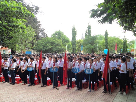 | Hơn 1.500 em học sinh đã về dự Lễ đón nhận Bằng khen của Thủ tướng Chính phủ và Cờ thi đua xuất sắc của UBND tỉnh trao tặng. |