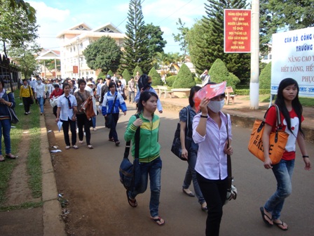 | Thí sinh sau khi kết thúc môn thi Toán khối A tại Trường Đại học Tây Nguyên |