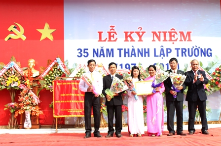 | ... và tặng hoa tri ân lãnh đạo ngành Giáo dục và nhà trường qua các thời kỳ tham dự Lễ kỷ niệm. |
