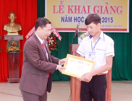 | Các em học sinh có thành tích xuất sắc trong năm học 2013-2014 được nhận quà. |