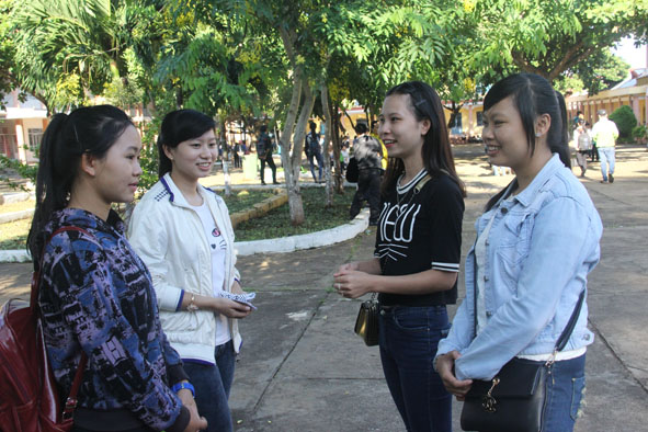 | Thí sinh tại điểm thi Chuyên Nguyễn Du hoàn thành ngày thi thứ 2 với tâm trạng thoải mái. Ảnh: NH |