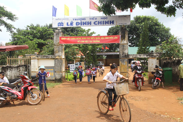 | Học sinh Trường Tiểu học Lê Thị Hồng Gấm (xã Đắk Phơi) giờ tan trường. |