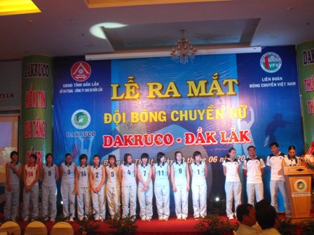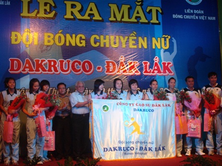 Sáng 10-6, tại Khách sạn DAKRUCO, được sự đồng ý của UBND tỉnh, Sở Văn hóa - Thể thao và Du lịch; Bộ Tư lệnh Thông tin và Công ty Cao su Dak Lak - DAKRUCO đã long trọng tổ chức Lễ ra mắt đội bóng chuyền nữ DAKRUCO - Dak Lak. Các đồng chí: Trần Sỹ Thanh, Phó Chủ tịch UBND tỉnh; Y Wái Byă, Giám đốc Sở VH-TT và DL; Huỳnh Văn Khiết, Giám đốc Công ty Cao su Dak Lak; đại diện lãnh đạo một số cơ quan, ban ngành của tỉnh cùng các phóng viên báo, đài trung ương và địa phương đã về dự.