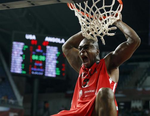 Vận động viên Felizardo Ambrosio, đội tuyển Angola ăn mừng chiến thắng sau khi bỏ rổ thành công trong trận thi đấu với đội tuyển Mỹ tại Giải Vô địch Bóng rổ thế giới FIBA, Istanbul (Thổ Nhĩ Kỳ), ngày 6-9.