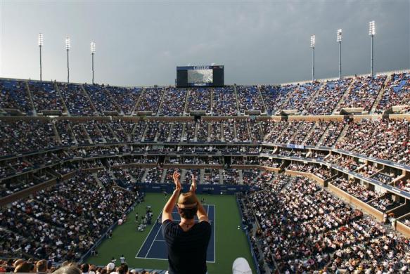 Một fan hâm mộ đứng lên để cổ vũ cho 2 tay vợt Rafael Nadal và Novak Djokovic trong trận chung kết nam tại Giải quần vợt US Open, ở New York(Mỹ), ngày 13-9.