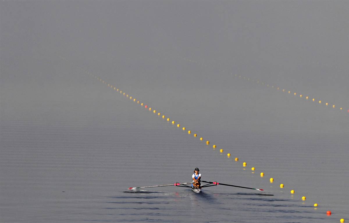 Vận động viên Laura Milan của Italia đang thi đấu nội dung chèo thuyền đơn nữ, ở Giải vô địch chèo thuyền châu Âu, tại Bồ Đào Nha, ngày 11-9.
