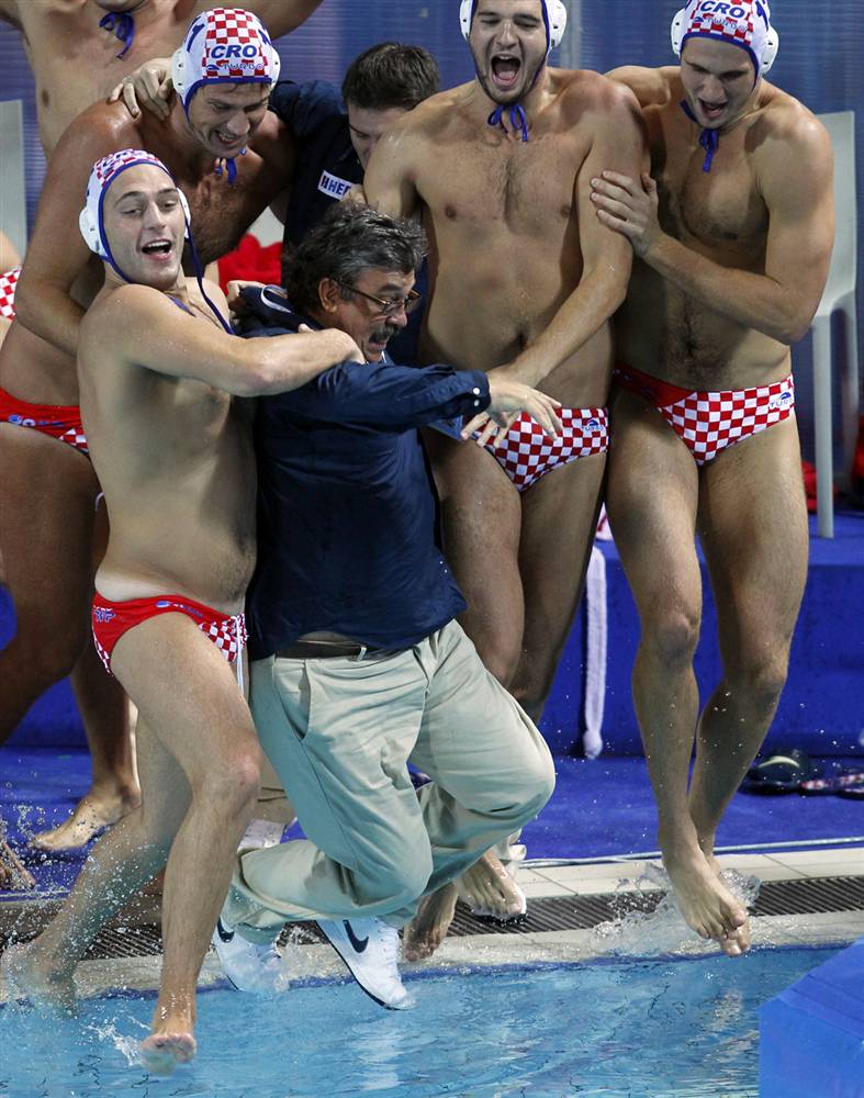 Thành viên của đội tuyển bóng nước Croatia ăn mừng sau khi đánh bại đội tuyển Italy trong Giải Vô địch bóng nước châu Âu ở Zagreb (Croatia), ngày 11-9.