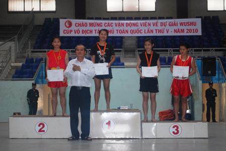 Sau gần 3 ngày thi đấu sôi nổi (từ ngày 25 đến 27- 9), chiều 27- 9, tại Nhà thi đấu TDTT tỉnh, Giải wushu Cup vô địch Tán thủ toàn quốc lần thứ V - 2010 đã diễn các trận đấu chung kết ở tất cả các nội dung (7 hạng cân nữ và 8 hạng cân nam).