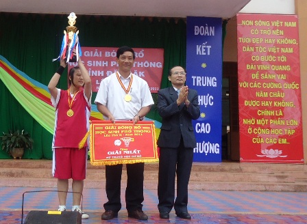 | Lãnh đạo Sở GD-ĐT trao giải Nhất khối nữ THPT cho Trường THPT Buôn Hồ |