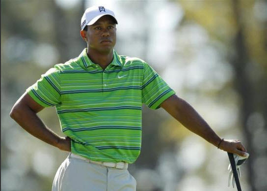 Tay gôn Tiger Woods theo dõi cú đánh đầu tiên của mình tại Giải Golf Master 2011, diễn ra tại sân gôn Augusta National Golf Club, tại Augusta, Georgia (Mỹ), ngày 7-4. (