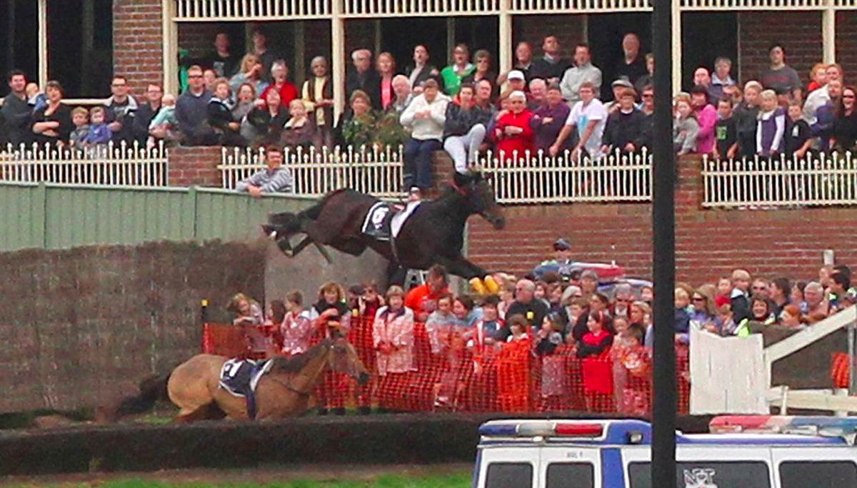 Chú ngựa Banna Strand, đã quá hào hứng rời bỏ cuộc đua rồi nhảy vào khán giả ở bên đường khi đang tham dự cuộc đua ngựa băng đồng Grand Annual Steeplechase, diễn ra tại Warrnambool (Úc), ngày 5-5. (