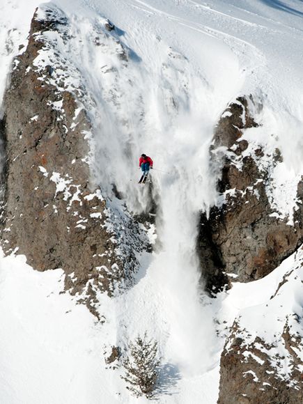 JT Holmes lao mình và thể hiện những kỹ thuật trượt tuyết điêu luyện từ một vách đá có độ cao 35 foot, trên thung lũng hẻo lánh Squaw Valley, California (Mỹ). Holmes đã thực hiện các pha nguy hiểm như vậy cho các bộ phim trượt tuyết kể từ khi ông... mới 15 tuổi. (