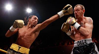 Tyrone Nurse (trái), tung cú đấm móc trước đối thủ Dale Miles trong trận tứ kết Giải quyền anh Prizefighter Betfair Series, diễn ra ở Wolverhampton (Anh). (Ảnh: Zuma Press)
