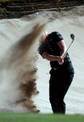 Suzann Pettersen, Na Uy đánh bóng lỗi từ hố cát của lỗ thứ 13 tại Giải đấu golf Úc mở rộng dành cho nữ diễn ra ở Melbourne (Australia). (Ảnh: EPA)