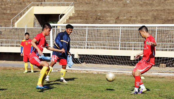 | Thanh Hoá (áo vàng) đã có cú lội ngược dòng trên sân nhà |