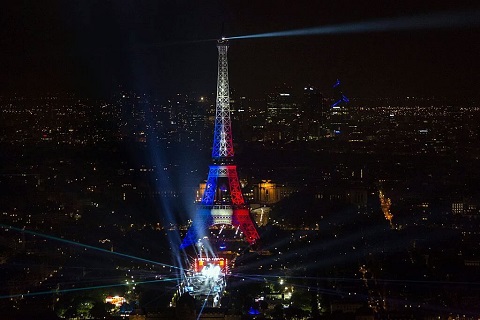 Thủ đô Paris của Pháp rực rỡ trong đêm khai mạc. |