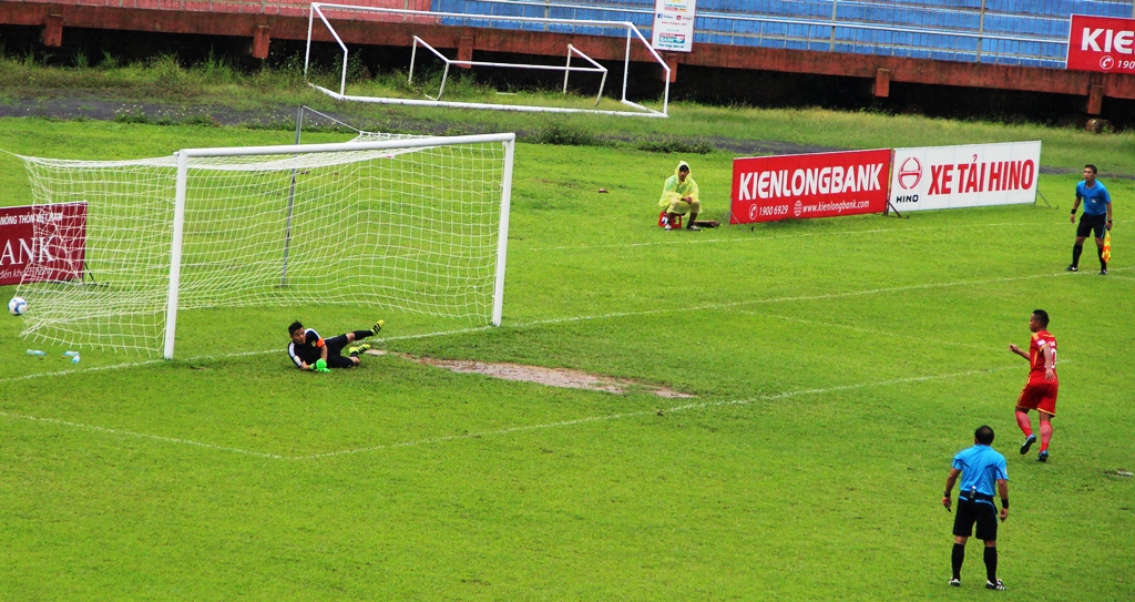 Khi hiệp một mới diễn ra hơn 10 phút, từ một pha tấn công trung lộ, chân sút Trần Hữu Thụ (9) tung cú dứt điểm từ ngoài vòng 16m50, bóng đi vào góc xa khung thành đội Đắk Lắk trước sự ngỡ ngàng của khá đông khán giả.