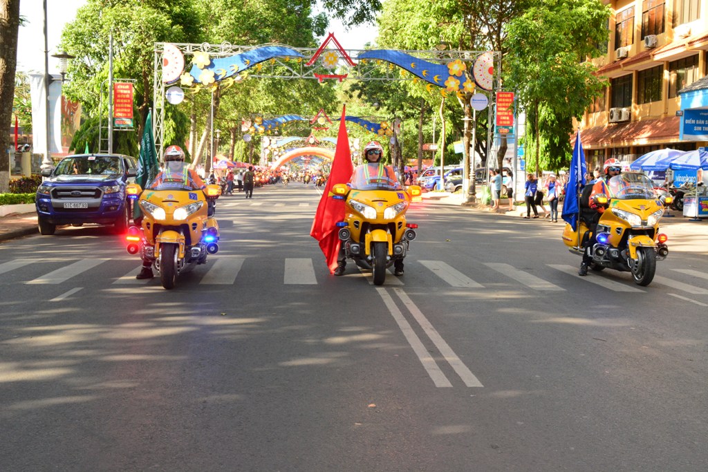 | Đoàn mô tô hộ tống các vận động viên. |