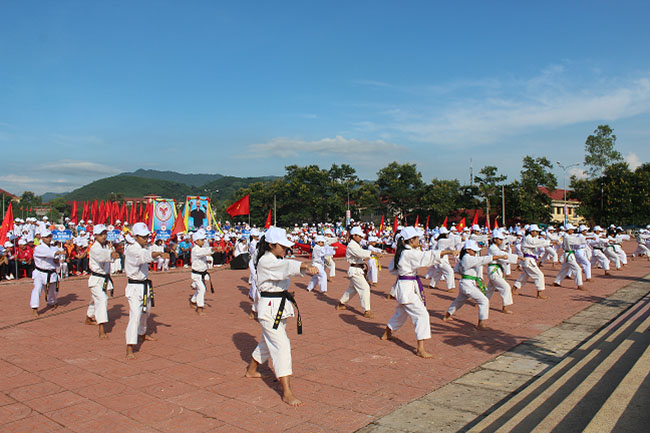 Là sự kiện thể thao lớn nhất, được tổ chức 4 năm 1 lần, Đại hội Thể dục thể thao tỉnh lần thứ VIII, năm 2017-2018 đã thu hút hơn 750 vận động viên của 15 huyện, thị xã, thành phố tranh tài ở các môn: điền kinh, bắn nỏ, bóng đá futsal nam, đẩy gậy, kéo co, vovinam để tìm ra những gương mặt xuất sắc nhất.