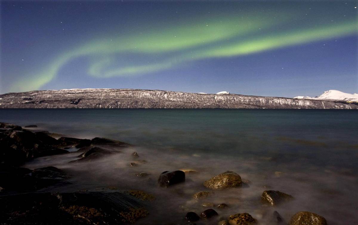 Luồng cực quang ở phía bắc sông Knik, bang Alaska (Mỹ), vào ngày 29-11-2006, trông như một vũ điệu của một nghệ sĩ ballet đang biểu diễn những điệu nhảy đầy uyển chuyển giữa bầu trời đêm.