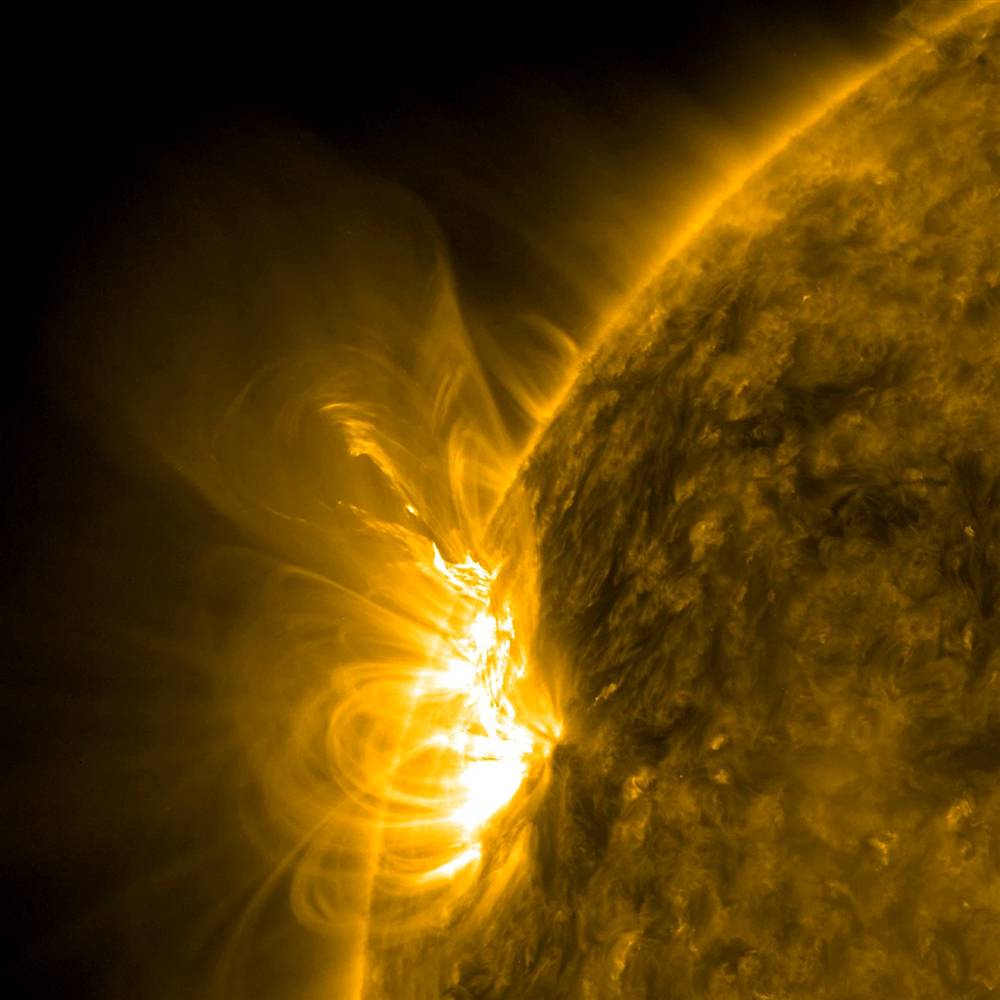 Vệ tinh quan sát mặt trời Solar Dynamics Observatory (SDO) của NASA, đã chụp được bức ảnh này bằng tia cực tím vào ngày 9-7 cho thấy một đợt phun trào mới của mặt trời. Các vòng lửa trong ảnh trông như các vòng khuyên mỏng, được tạo nên dọc theo các đường xoắn ốc và từ các đợt từ trường hình thành ở bên trên bề mặt của mặt trời.