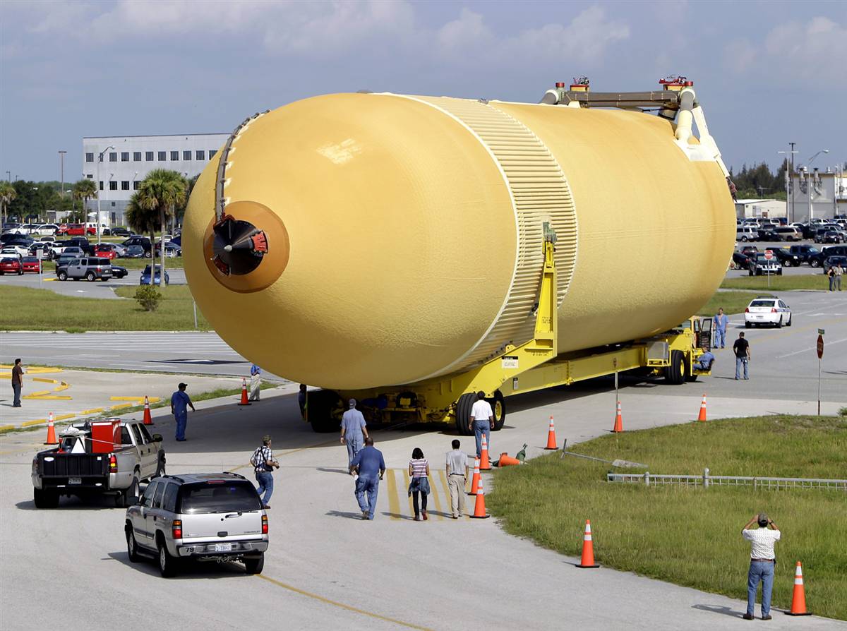 Những xe tải hạng nặng vận chuyển những bồn nhiên liệu ở Trung tâm Vũ trụ Kennedy, Florida, Mỹ vào ngày 14-7. Theo dự kiến của NASA, những bồn xăng này được dùng cho chuyến bay cuối cùng của tàu con thoi Endeavour sẽ được thực hiện vào tháng 2-2011. Nhưng hiện tại NASA đang có kế hoạch sẽ thực hiện tiếp một chuyến bay vào vũ trụ của tàu con thoi vào giữa năm 2011.