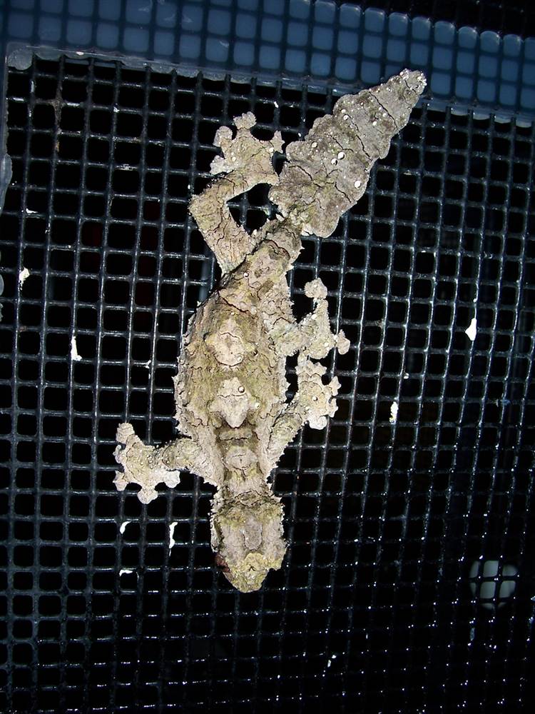 Nếu không có tấm lưới chưa chắc bạn đã nhìn ra con tắc kè Uroplatus pietschmanni, khả năng ngụy trang của chúng thật đáng kinh ngạc và chính điều này đã khiến các nhà khoa học rất vất vả khi tìm kiếm chúng trong các khu rừng nhiệt đới ven biển phía Đông của Madagascar, vào năm 2003.
