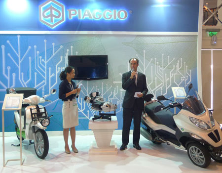 Tại Hội thảo về Giải pháp xanh GreenBiz 2011 vừa được phòng thương mại Châu Âu (Eurocham) và VCCI tổ chức ở TP. Hồ Chí Minh, Tập đoàn Piaggio đã cho trưng bày hai sản phẩm phương tiện công nghệ xanh tiên tiến nhất trên chiếc xe máy 3 bánh Mp3 Hybrid (động cơ lai xăng điện) và xe máy hai bánh Liberty E-mail động cơ điện.