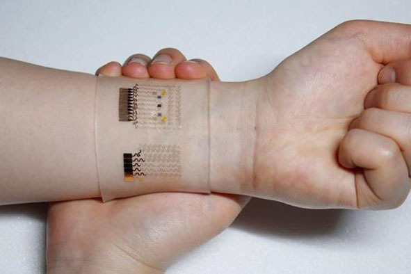 Trung tâm Nghiên cứu Nano (CNR) Hàn Quốc vừa phát triển thành công miếng dán graphene (còn gọi là màn hình mang trên người đi từ graphene) cho phép theo dõi và điều trị bệnh tiểu đường một cách chính xác và hiệu quả dựa trên phân tích mồ hôi. Cơ chế hoạt động của màn hình này là tích hợp vật liệu chức năng điện hóa và vật liệu chức năng mềm gốc graphene pha lẫn hạt vàng, có cấu trúc xoắn ruột gà. Chức năng giám sát độ pH và nhiệt độ của thiết bị được theo dõi chặt để giúp hệ thống có được số đo glucose trong mồ hôi cũng như độ pH (độ axit trong máu), nhiệt độ một cách chính xác. Nếu biết nồng độ glucose trong mồ hôi chính xác sẽ biết lượng đường huyết trong cơ thể. Nên đeo miếng dán ở nơi có nhiều mồ hôi, trung bình 15 phút mồ hôi sẽ hấp thụ lên miếng dán và sẽ cho kết quả ngay.