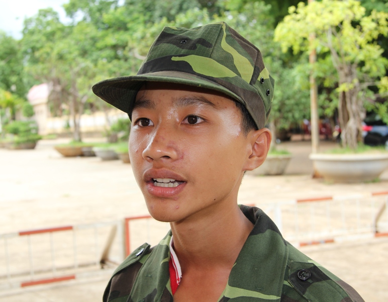 Khi mới tham gia “Học kỳ quân đội” thì em thấy khổ, vì chưa quen. Giờ giấc sinh hoạt ở nhà của em rất thoải mái, em thích thức dậy lúc nào cũng được, thích ăn lúc nào cũng được. Nhưng sau một vài ngày làm quen, em rất thích, rất vui, muốn “Học kỳ trong quân đội” kéo dài hơn, em không muốn chia tay với Tiểu đoàn 303. Đối với em kỷ niệm những ngày tham gia “Học kỳ quân đội” sẽ không bao giờ phai trong tâm trí. 11 ngày tham gia học tập, em đã tích lũy thêm cho mình được nhiều kiến thức bổ ích, sống, sinh hoạt, làm việc có tổ chức, kỷ luật hơn, tạo cho mình một thói quen tốt là sáng dậy sớm, đúng giờ, ăn ngủ đúng giờ để bảo đảm sức khỏe. Một điều vô cùng ý nghĩa là “Học kỳ trong quân đội” cũng giúp chúng em hiểu sâu sắc hơn giá trị của tinh thần đồng đội. Các anh tiểu đội trưởng đã dạy chúng em phải sống như thế nào là một đồng đội của nhau để giúp đỡ nhau vượt qua khó khăn. Em đã là một người khác rồi, trưởng thành hơn, suy nghĩ chững chạc hơn.